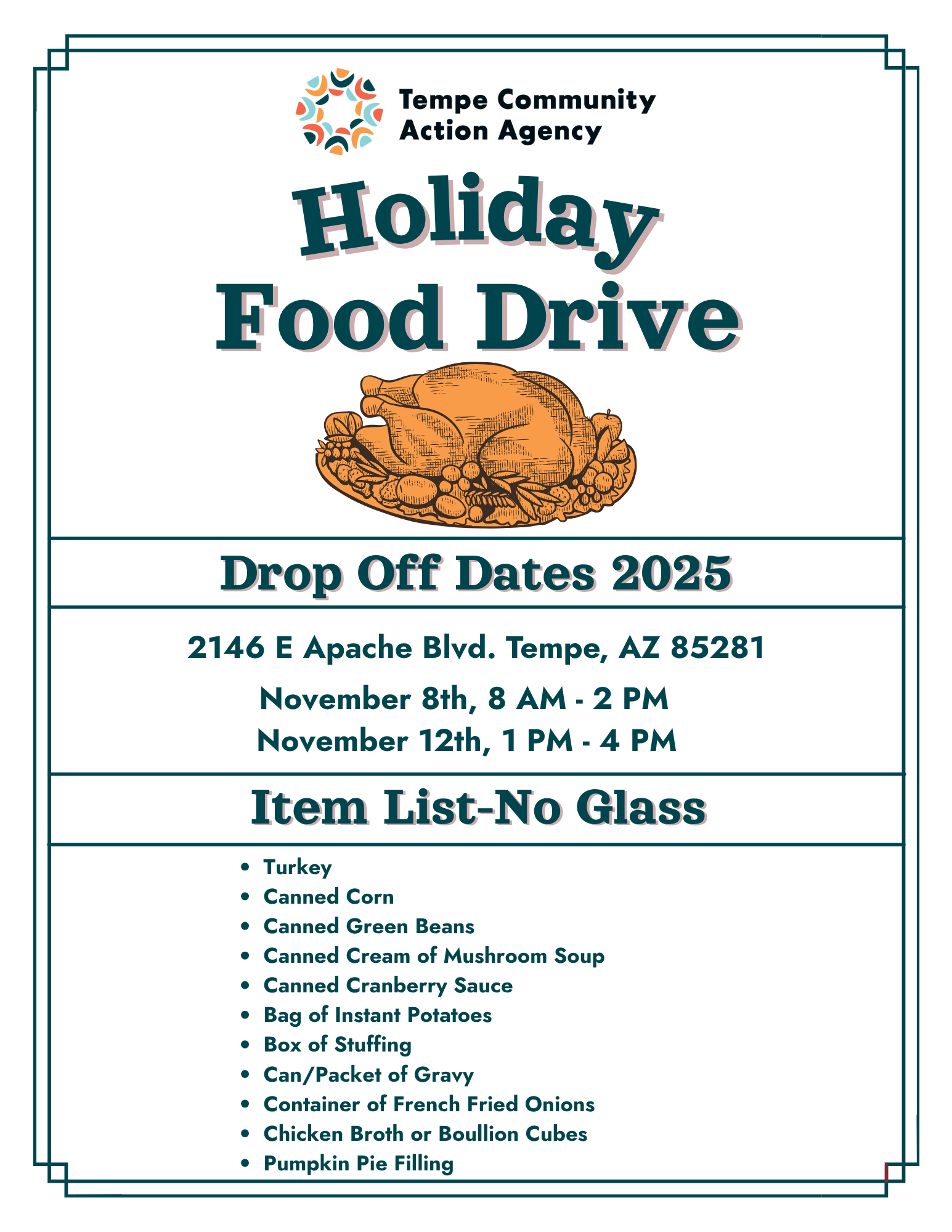 Location: The Food Pantry is located at TCAA's Esquer and Ramsey Center, 2146 E. Apache Blvd. Tempe, AZ 85281