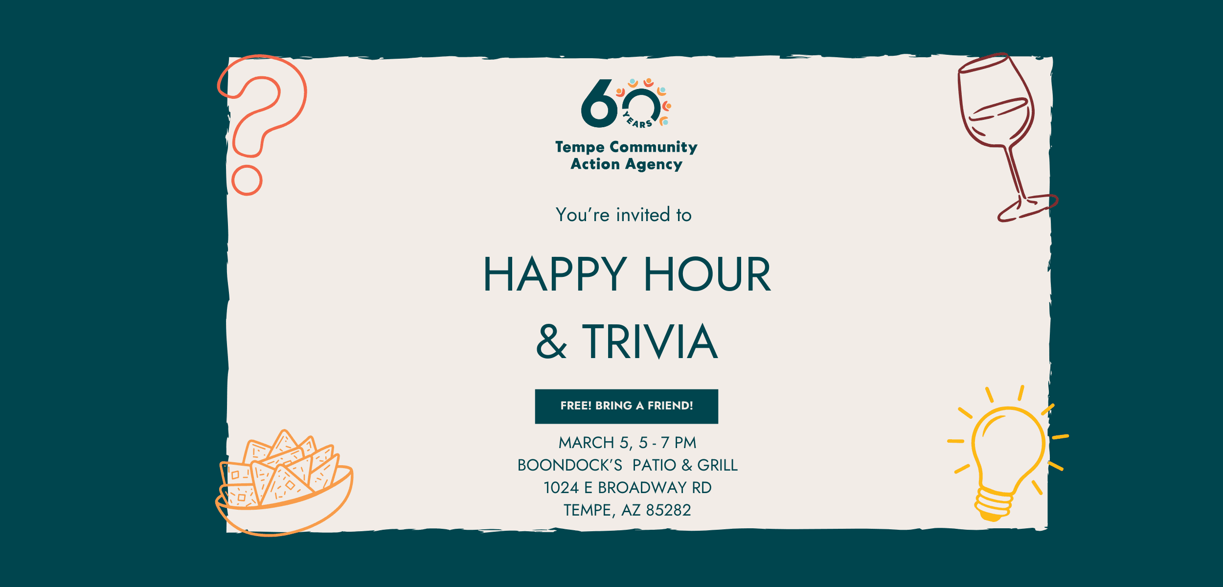 Join us for a relaxed social time on the Boondocks patio on March 5th!